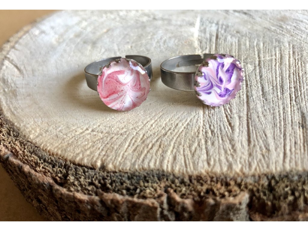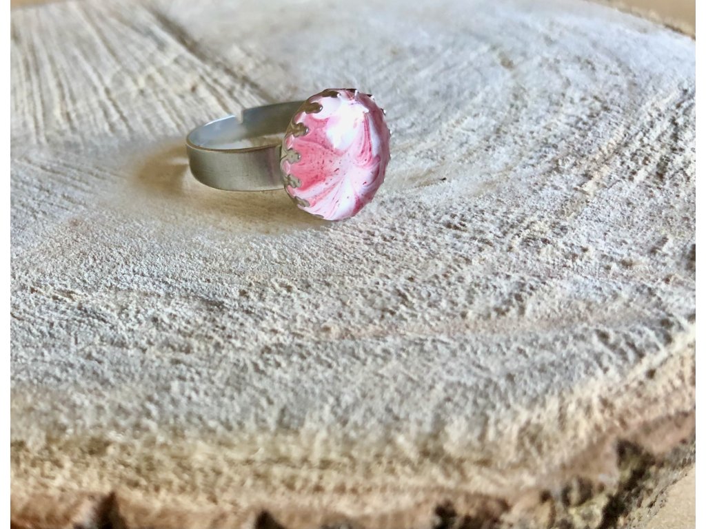 Prstýnek tvaru korunky v barevných tónech, které si sami určíte, ručně malovaný a zalitý křišťálovou pryskyřicí. Materiál nerezová ocel. Průměr malovaného lůžka je 13 mm a obvod lze nastavit do požadovaného průměru.